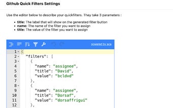 Github Filters adalah ekstensi untuk browser Chrome yang dirancang untuk mempermudah pengguna dalam menyaring assignees pada proyek Github saat melakukan scrum harian. Dengan menggunakan ekstensi ini, pengguna dapat membuat dan menyimpan filter kustom yang sering digunakan, sehingga meminimalisir waktu yang dihabiskan untuk mengatur filter setiap kali. Fitur utama dari Github Filters termasuk kemampuan untuk menambahkan filter di bawah bilah filter yang ada, memungkinkan akses yang cepat dan efisien.